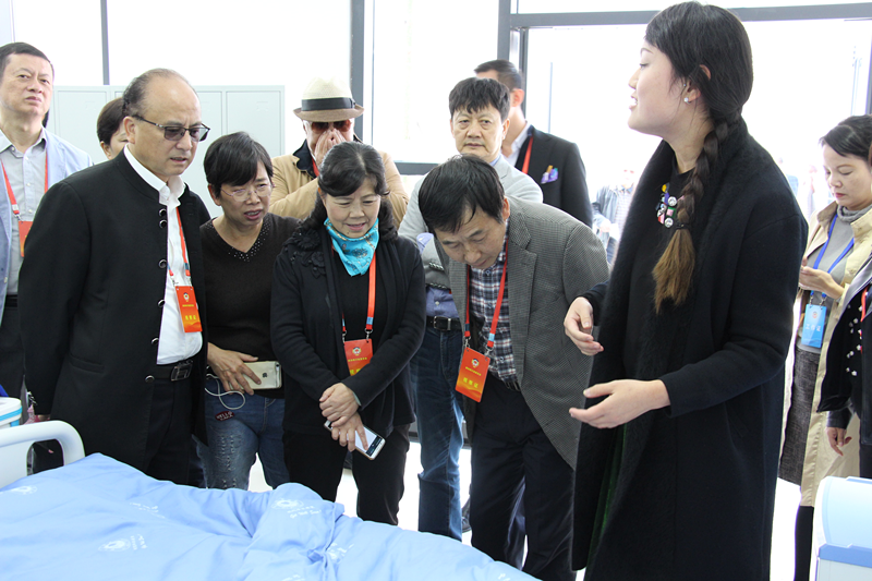 陈文华(左二)一行现场查看康养学院护理实训中心 |