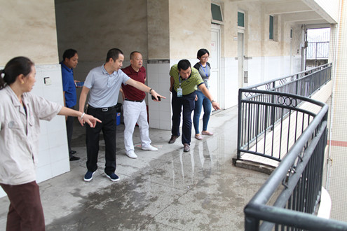 6月28日晚,我市遭受强风暴雨袭击后,西苑校门内出现滑坡现象,检查中肖立军查看了滑坡及第六教学楼楼顶的排水情况,强调针对校园内易造成基础下陷、山体滑坡等不安全因素,应尽早进行排查鉴定,并要求相关部门对教室、学生宿舍、食堂、电房、图书馆、运动场、围墙等教学生活设施,进行一次全面安全隐患排查,切实把各项安全措施落到实处,确保汛期我校校园安全。