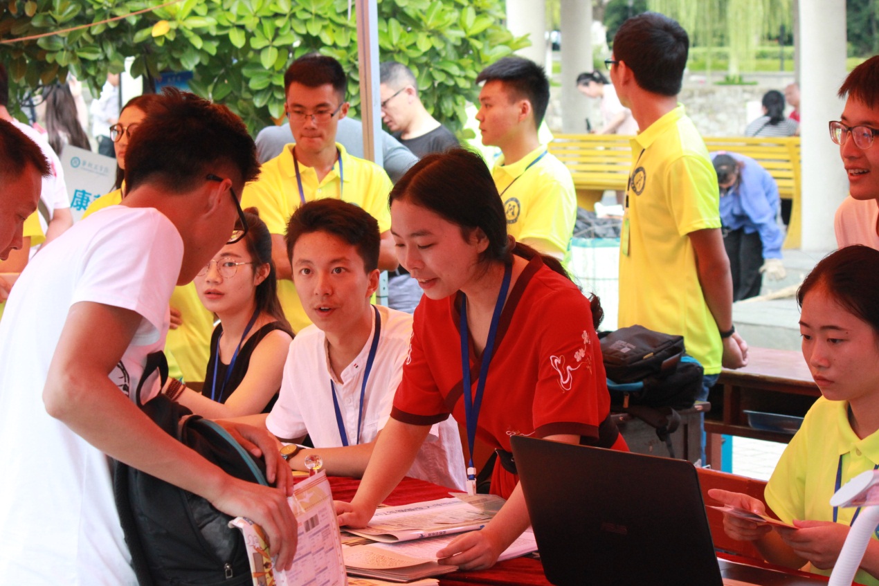 初升的太阳将夜间的疲惫驱散一空,各学院迎新工作点渐渐开始忙碌起来,各点志愿者们积极为新生提供报到注册、检录、安排寝室等志愿服务,并发放《新生手册》、攀大地图和入学日程表等资料为新生排忧解难。
