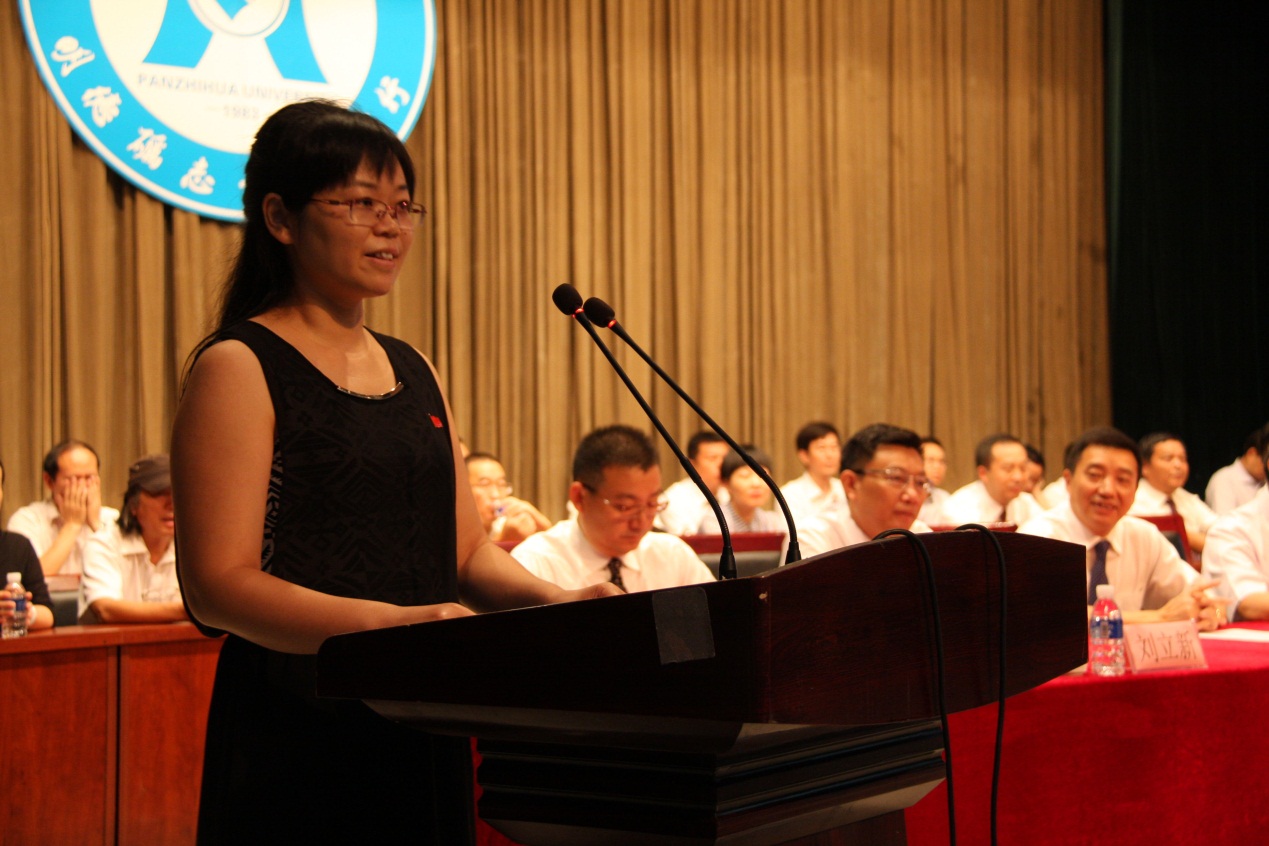 党委书记肖立军作题为《以人民满意和社会需求为目标,全心全意培养高素质应用型人才》的讲话。他围绕“什么是大学”、“攀枝花学院是一所什么样的大学”、“大学生应该怎样渡过大学生涯”三个方面内容与同学们进行了亲切交流。他认为,大学是道德的高地,是知识的殿堂,是同学们成长成才的加油站。他指出,攀枝花学院以对同学们终身发展负责为目标,是同学们砥砺品行的高地;以培养高素质应用型人才为目标,是同学们成长成才的重要基地;以人民满意为目标,是同学们共同的信念支柱和精神家园。他希望,同学们要崇尚美德,做一个道德高尚的人;磨砺意志,做一个理想信念坚定的人;博学笃行,做一个有真才实学的人。最后,他语重心长地说道:“同学们,过去的已成为过去,未来掌握在自己手中,雄关漫道真如铁,而今迈步从头越!希望同学们将来回首自己大学生活时,能够不悔初心,不负重望,向自己、向亲人、向社会交上一份满意的答卷!”