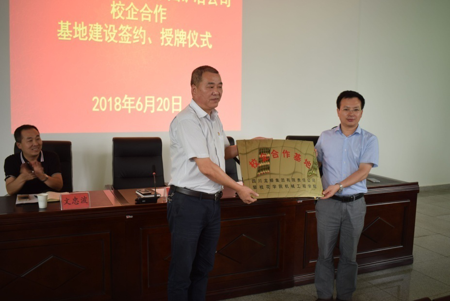 课题发表当天,机械工程学院与盐边县新九乡人民政府建立校地合作基地,围绕“建设国家战略资源创新开发试验区核心区”发展目标,充分利用校地双方优势资源,在人才培养领域、信息资源领域等方面开展广泛合作,充分实现资源共享、互惠共赢、优势互补与共同发展。当天,机械学院与新九乡龙头企业四川龙蟒矿冶有限责任公司携手建立校企合作基地并授牌。