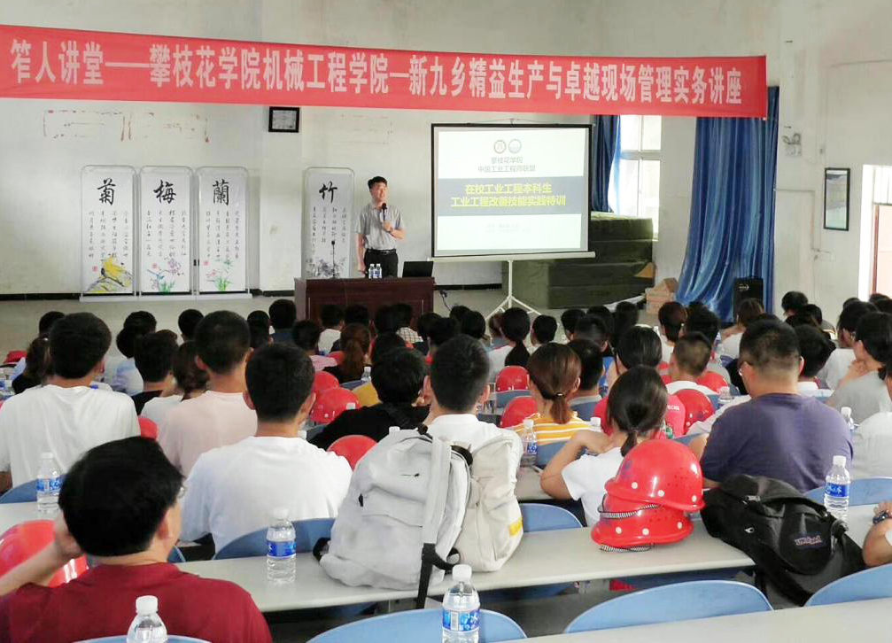 6月11日,机械工程学院与攀枝花市盐边县新九乡新九小学联合举办了精益生产与卓越现场管理实务讲座,为生产实习拉开序幕。此次讲座涉及政府、学校、企业三方人员,中国工业工程师联盟创始人兼营运顾问魏俊超先生从现代制造业的特点、工业工程的特点及目的、科学管理关键理论、精益生产系统特点等四个方面为大家展开精彩的讲述。讲座指出了现代制造业发展的特点与趋势,强调了产品质量与服务速度对当代企业的重要性,总结了企业的管理应当科学化、管理化、高效化,更是引用了日本丰田企业的例子深入浅出的为大家讲解精益管理在企业管理中的重要性。