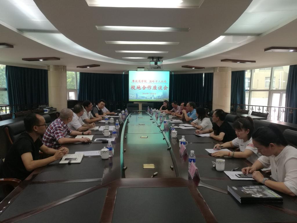 7月27日,我校与浙江温岭市人社局在办公楼三楼会议室召开校地合作座谈会。温岭市人社局副局长陈文云一行8人,办公室、招就处、组织人事部、教务处、智能制造学院负责人参加了座谈会。副校长石维富主持会议。