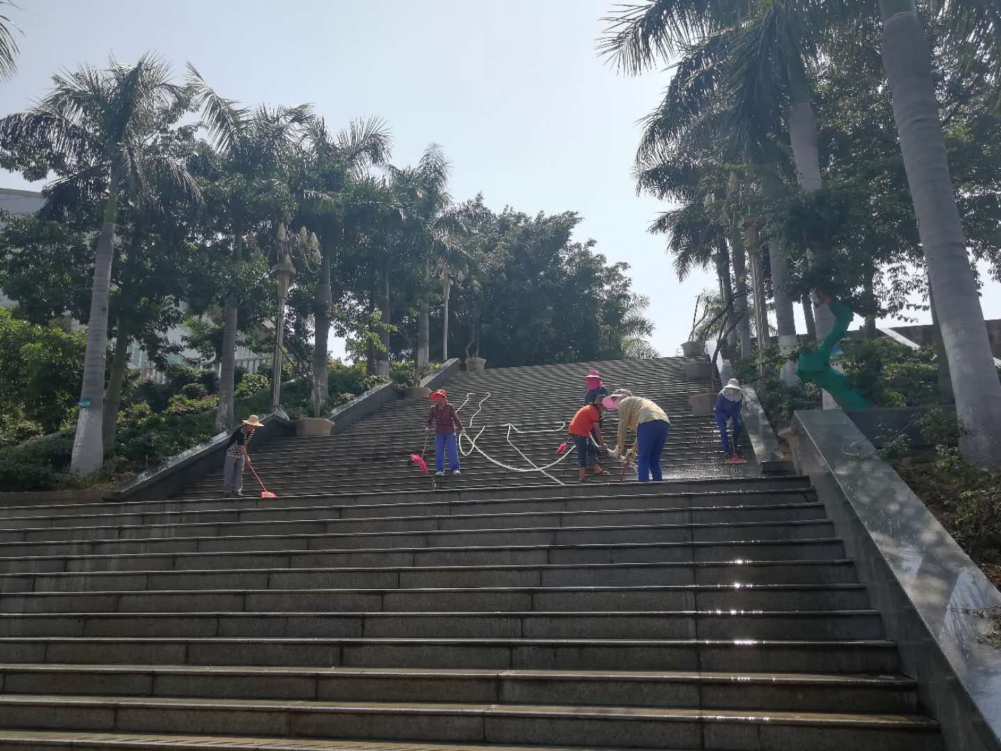 清洗校园大梯道