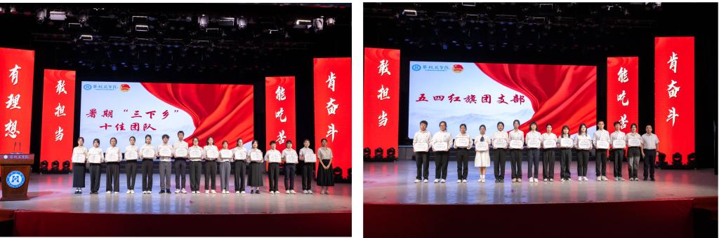 大会现场表彰2023年度“两红两优”、2023年暑“三下乡”的优秀个人和集体。