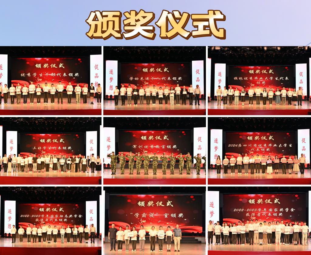 大会从“心怀阳光、行向远方” “磨砺意志、愉悦身心” “大美其美、美美与共”3个篇章,对优秀个人进行了表彰。省学术和技术带头人后备人选杨颖教授,2023年攀枝花市最美退役军人于玉城,学校优秀辅导员代表,教务处、招就处、团委负责人等作为嘉宾为获奖学生颁奖。