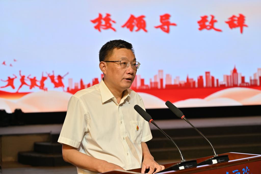 刘立新对受表扬的同学表示祝贺,向为同学们成长成才辛勤付出的老师表示感谢。他介绍了学校服务国家战略、融入地方发展的情况和优秀校友服务经济社会发展的情况。希望到表扬的同学要立好标杆、树好榜样,以“共同富裕”理念带动全体学生共同高质量发展;希望全体学生认真汲取榜样的力量,坚定信念、精心学习、争创第一。他指出,各单位要多渠道、多方式宣传优秀事迹,扩大影响、提升实效,不断激励全体师生勤奋严谨、努力向上。