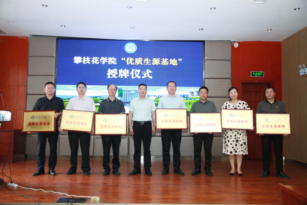 会上,胥刚为市内七所高中学校授“攀枝花学院优质生源基地学校”牌匾。