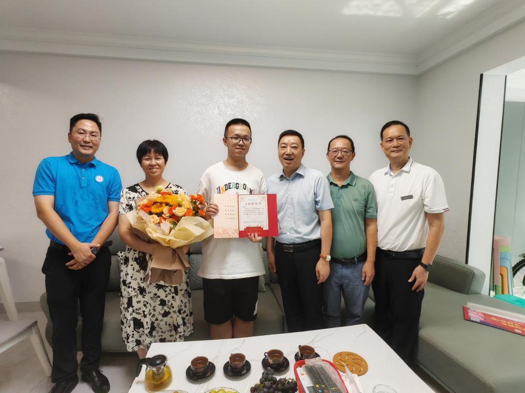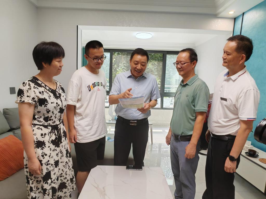7月24日下午,学校党委书记胥刚带领招生就业处相关同志,将编号为20240001号的我校2024年第一份学生录取通知书(本科一批次:临床医学专业)送达攀枝花学子杨洪权家中。