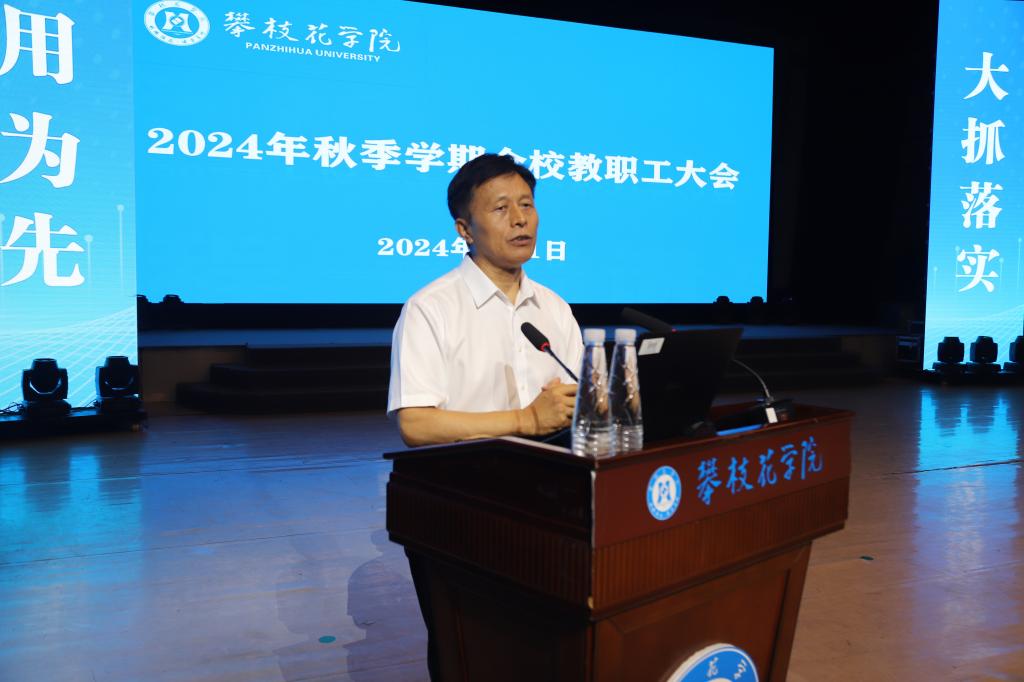 党委常委、副校长张旭辉围绕教育教学审核评估,以《扎实推进教育教学审核评估 全面提升人才培养质量》为题作专题发言。他深入剖析了学校迎接审核评估的优势和现存的问题。他指出,新一轮本科教育教学审核评估,事关学校长远发展,关乎全体师生切身利益,要高度重视、振奋精神,全力迎接教育教学审核评估;要全员参与、协同发力,教育教学工作再上新台阶;要正视问题、找准差距,全面补齐短板弱项;要齐心协力,真抓实干,紧起来,严起来,强起来,为教育教学水平提高,人才培养质量提升共同努力!
