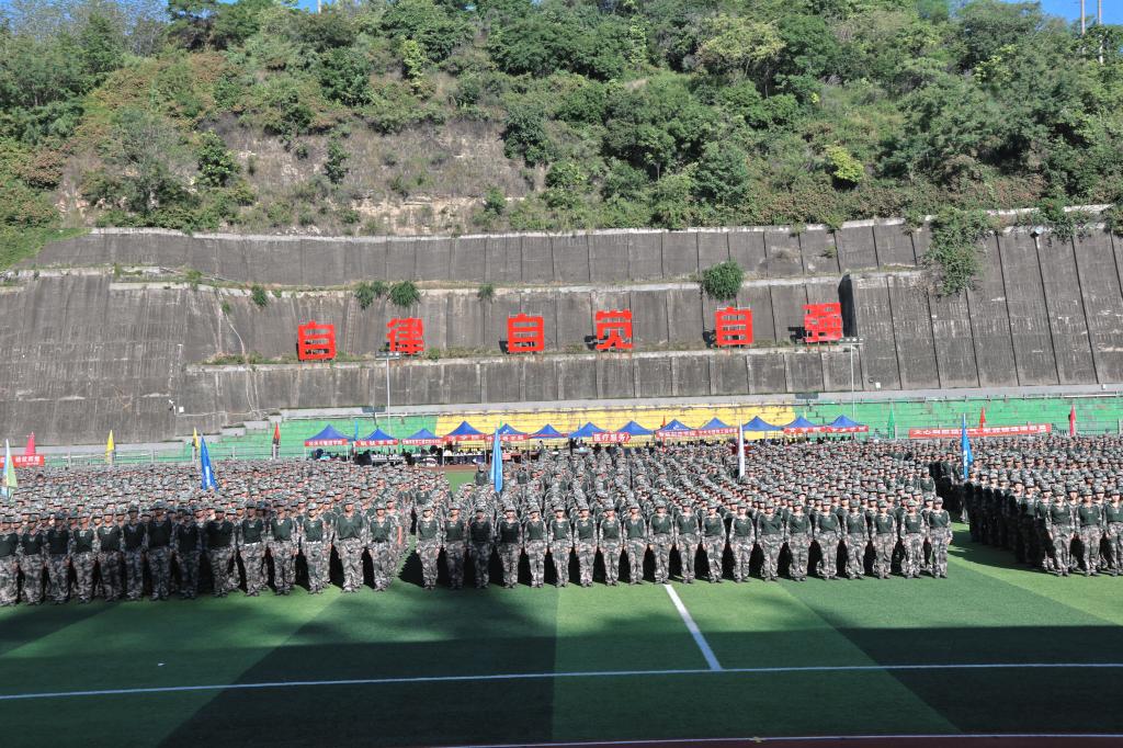 923日上午,我校2024级新生军训汇报大会在南苑运动场隆重举行。校党委书记胥刚,副校长张旭辉、朱云生,东区人武部副部长杨琪出席大会。学校党政办、宣传部、教务处、武装部、保卫处、后管处、体育部、团委负责人,各学院党组织书记、分管学生工作领导、学生科长、新生辅导员,学生教官、2024级全体新生参加大会。