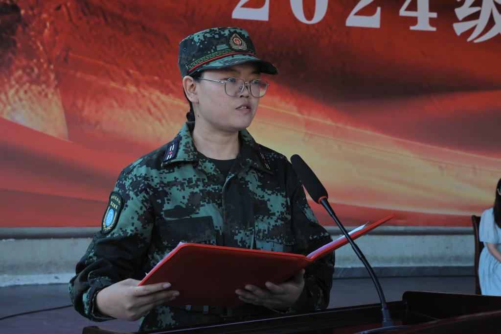 来自医学院2024级的优秀学员方鳞代表参训新生分享了自己的军训感受和收获。她表示,军训不仅让大家强健了体魄、磨炼了意志,还让大家了解了中国军人的日常,体会到了国防教育的意义。未来会把军训期间养成的良好习惯和优良作风带到学习和生活中,以崭新的姿态尽快适应大学的新生活,做阳光健康美丽攀大人。