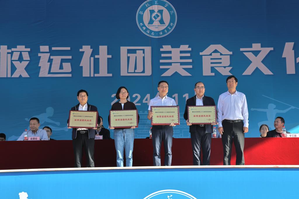 此次运动会,钒钛学院、数计学院、康养学院分别获得教工组前三名;土建学院、智造学院、基础医学院分别获得学生组团体总分前三名,教工组生化学院、土建学院、基础医学院、电气学院与学生组康养学院、智造学院、土建学院、外国语学院分别获得了体育道德风尚奖。与会领导为获奖单位颁发了奖牌、奖杯。
