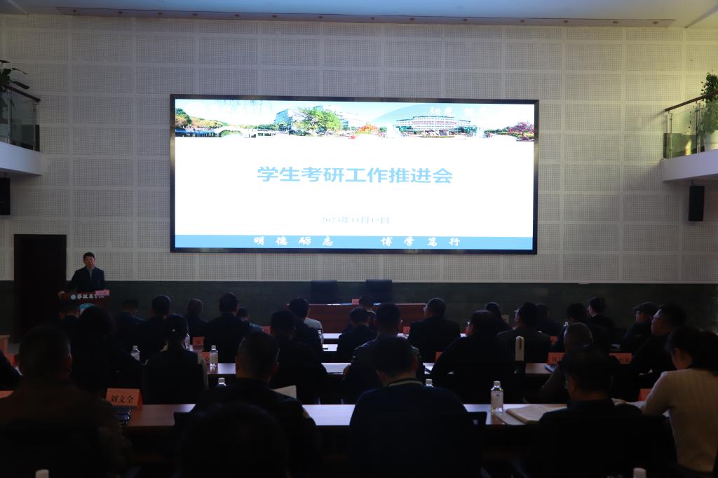 胥刚对各学院考研工作开展情况表示肯定。他指出,这次会议既是经验总结会又是工作动员会,是学校在党代会提出的“新三步”战略,狠抓内涵建设,狠抓质量强项的第一个重大举措。他强调,各学院要根据学科专业特色研究和拓展考研工作,要引导学生辅修第二专业,同时要在组织、动员学生和引导、帮助学生上花大力气,下真功夫;要瞄准国家发展趋势,科学、精准制定考研目标,要把考研工作落实到科任老师、辅导员、班主任、育人导师工作中,既要过好考试关,又要抓好面试关,提升考研录取率;要协调配合,各部门要做好考研学生服务和保障工作,确保全校升学率稳步提升。