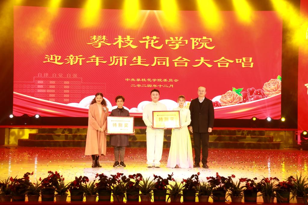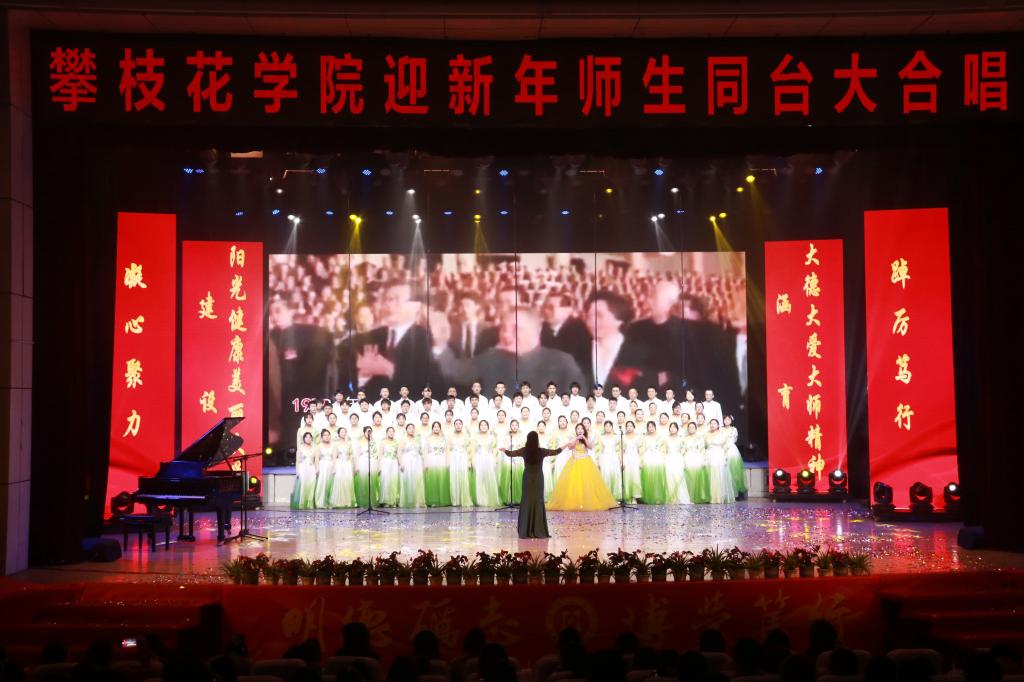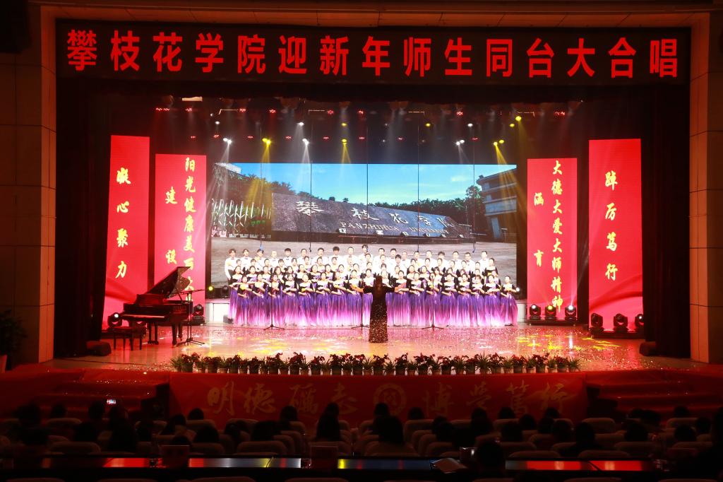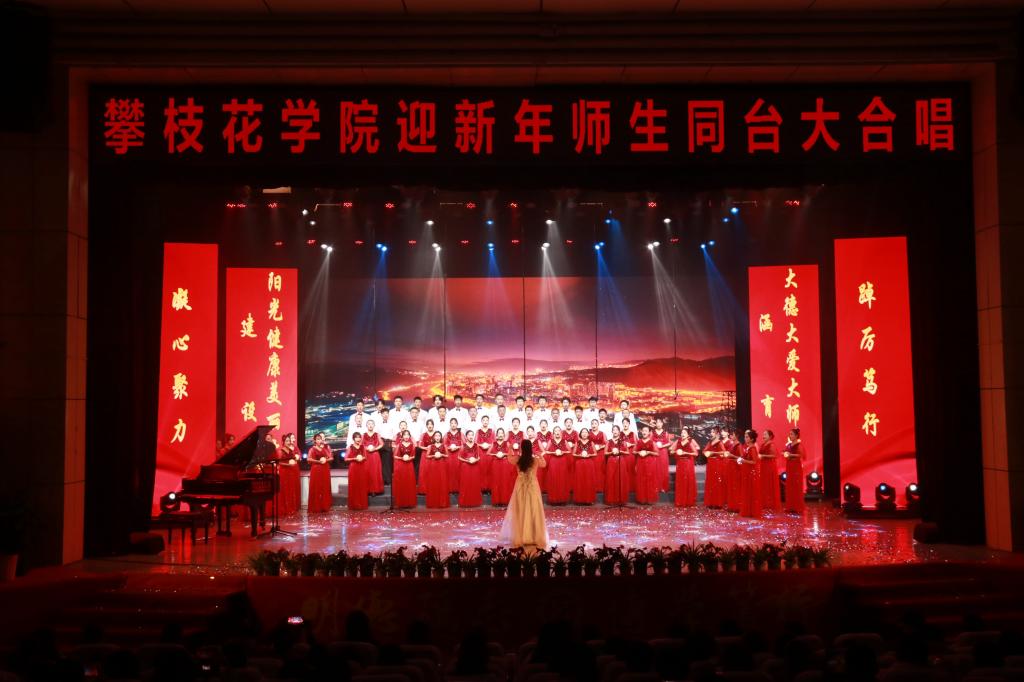 为庆祝中华人民共和国成立75周年,迎接新年的到来, 12月27日,学校在阳光会堂隆重举办迎新年师生同台大合唱活动。在校校领导出席活动,全校各学院、各部门15支队伍齐聚一堂、以歌传情,用激昂的歌声表达了对党和祖国的热爱,展现了攀大师生的精神风貌。