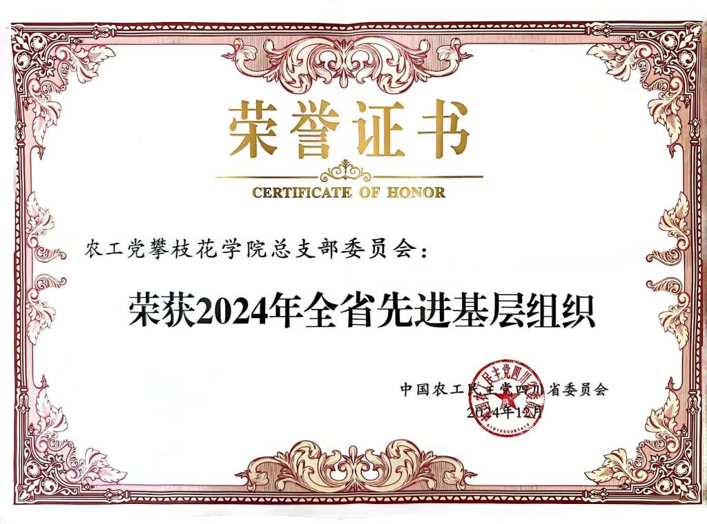 2024年农工党攀枝花学院总支在中共攀枝花学院党委和农工党攀枝花市委正确领导下,在学校统战部的大力支持下,围绕中心,服务大局,发挥特色,履行职能,积极参政议政、开展社会服务,加强自身建设,各项工作均取得新进展,分别被农工党四川省委会和攀枝花市委会评为“年度先进集体”,并荣获农工党攀枝花市委会成立40周年“先进集体”。农工党攀枝花学院总支主委冯奇被农工党四川省委会评为“年度先进个人”、被四川省欧美同学会(省留联会)评选为“优秀会员”;7名党员荣获农工党攀枝花市委会成立40周年先进个人。