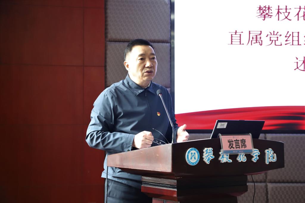 1月3日上午, 我校在弘毅楼416会议室召开2024年度直属党组织书记抓党建工作述职评议会。在校校领导、校党委委员、各直属党组织书记、基层一线党代表参加会议。党委书记胥刚出席会议并讲话。会议由校党委副书记刘立新主持。