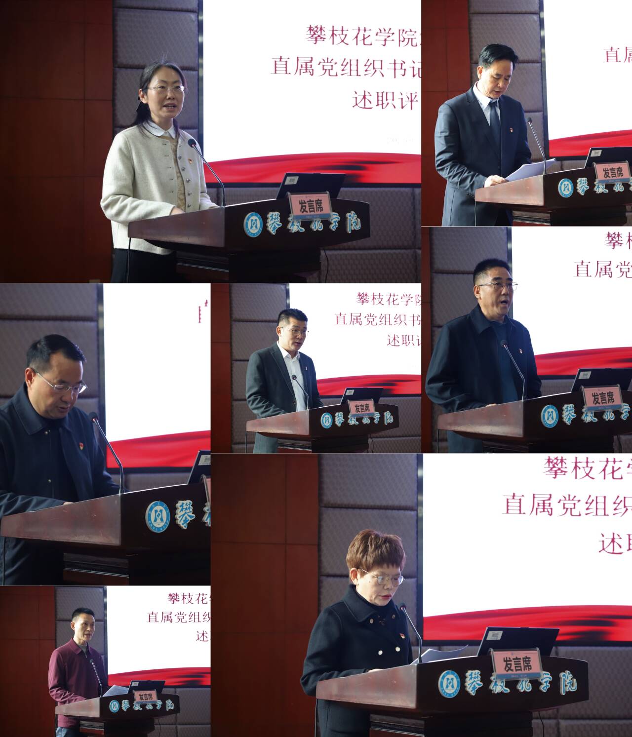 会上,经管学院党委、土建学院党委、康养学院党委、后勤党总支、离退休党总支、图书馆党支部、体育部党支部等7个直属党组织书记围绕抓党建主要做法及成效、存在的主要问题及原因分析、下一步工作打算三个方面依次进行了现场述职,其余14个直属党组织书记进行了书面述职。