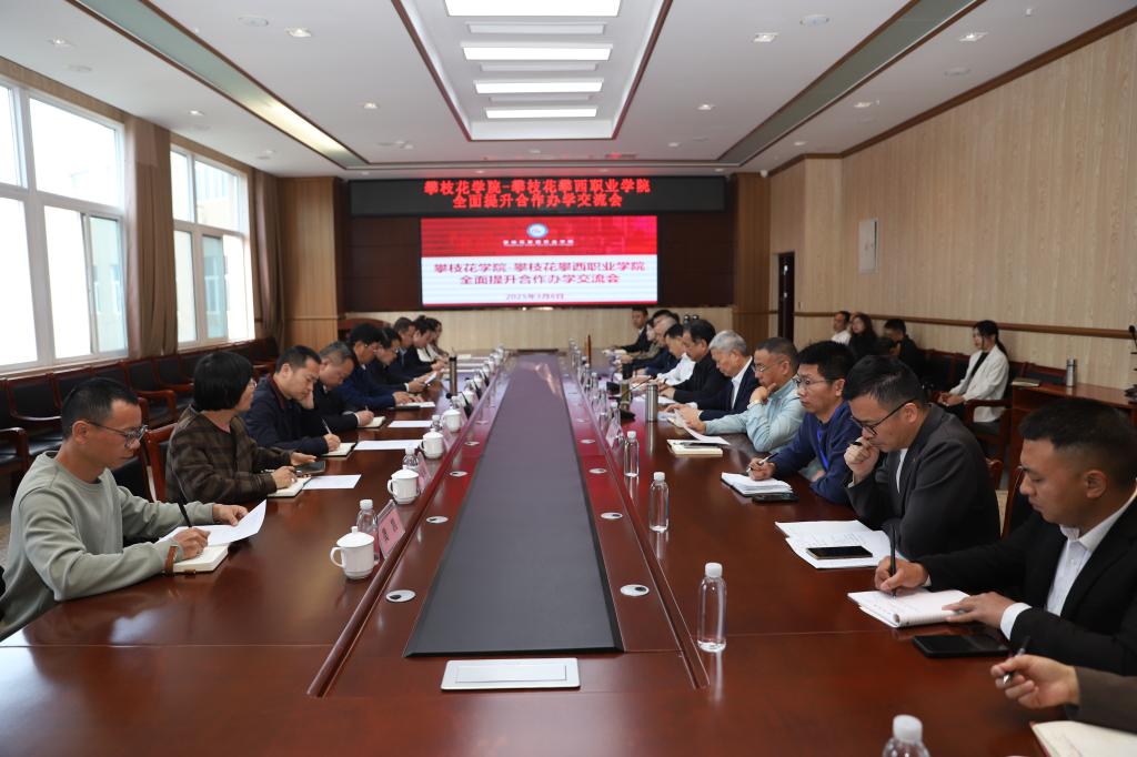 在攀枝花攀西职业学院(简称攀西职院),石维富一行与攀西职院董事长张家华,党组织书记、省政府督导专员万辉君等就“攀枝花学院-攀枝花攀西职业学院全面提升合作办学”开展深入交流。张家华详细介绍了攀西职院的发展现状、面临困难及未来发展规划,希望我校能够在管理、科研、师资、教学、资源等方面提供全方位的帮扶。石维富指出,攀枝花学院和攀西职院两所学校渊源深厚,近年来攀西职院一直在发展壮大,在今后,攀枝花学院将一如既往的全面支持帮扶攀西职院发展,积极开展人才共育,有序推进教师能力提升,大力开展招生就业活动,深化产教融合,有效推进科研合作。会上,双方进一步细化了科研合作、学生管理、招生就业、教育教学等方面的具体帮扶措施。