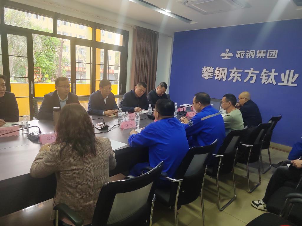 在安宁铁钛股份有限公司,党委书记张锋介绍了安宁铁钛公司经营情况、业务板块及面临在问题。双方就科研研究,人才培养和招聘等方面进行了深入交流和探讨,寻找合作契合点,初步达成合作意向。