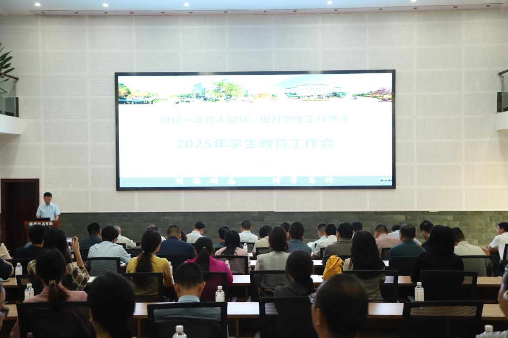 410日上午,我校在博雅厅召开2025年学生教育工作会。学工部、教务处、后管处、招就处、保卫处、体育部、马院、团委、心理中心负责人,各二级学院党委书记、副书记,学生科科长、全体辅导员参加会议。党委书记胥刚出席会议并讲话,副校长朱云生安排2025年学生教育管理工作。