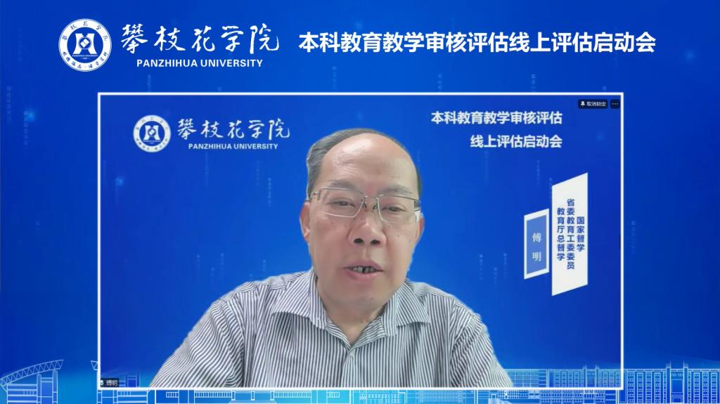 傅明代表四川省委教育工委、教育厅对专家组关心指导我校本科教育教学工作表示热烈的欢迎和衷心的感谢。他指出,新一轮审核评估是对高校的本科教育教学工作的一次全面的检验,更是高校立足新起点,实现新跨越的重要机遇。攀枝花学院此次审核评估工作要锚定国家战略方位,筑牢审核评估思想根基,主动站在为党育人、为国育才的政治高度,胸怀“国之大者”,省之要事,充分认识新一轮审核评估的重要性和必要性;要深化质量共同体意识,抓住新一轮审核评估契机,找准定位、补齐短板,进一步深化教育教学改革,持续筑牢本科教育核心地位,不断深化产教融合校企合作,赋能高质量应用型人才的培养;要坚持系统思维固化审核评估成果,推动学校高质量发展。