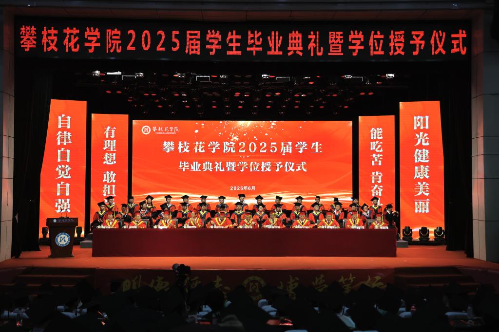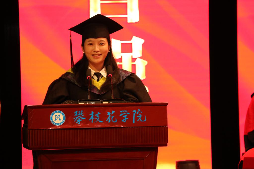 党委副书记、校长李兴贵作题为《“永攀”——向阳而生 向上攀登》毕业致辞。他回顾了毕业生们在校园的奋斗点滴,从清晨图书馆前的长队到深夜伏案钻研的身影,并对顺利完成学业、获得各类荣誉称号、继续读研深造、在创新创业等各类大赛斩获佳绩、携手奋进集体上岸、应征入伍、服务基层、扎根攀枝花的毕业生们表示热烈的祝贺。