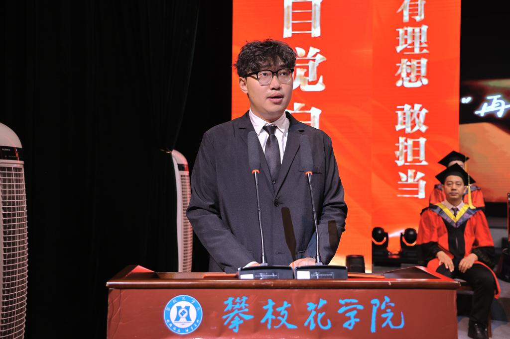 智能制造学院2022级曾佳玉代表在校学生为毕业生送上美好的祝福,祝愿学长学姐前程似锦,未来如光,无论走到何方,都能带着攀大赋予的勇气,书写精彩人生。
