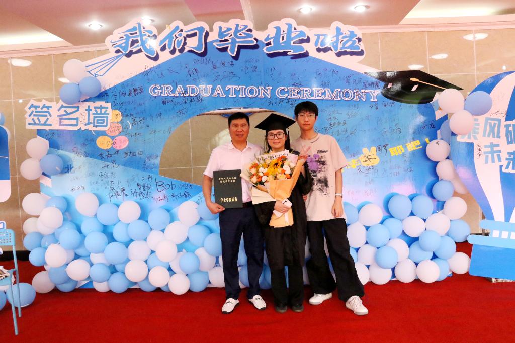 经管学院孙悦的母亲李虹英女士代表所有毕业生家长感谢学校和老师对孩子的辛勤培育。寄语毕业生们带着勇气和担当,牢记校训精神,在人生新征程上书写属于自己青春华章。