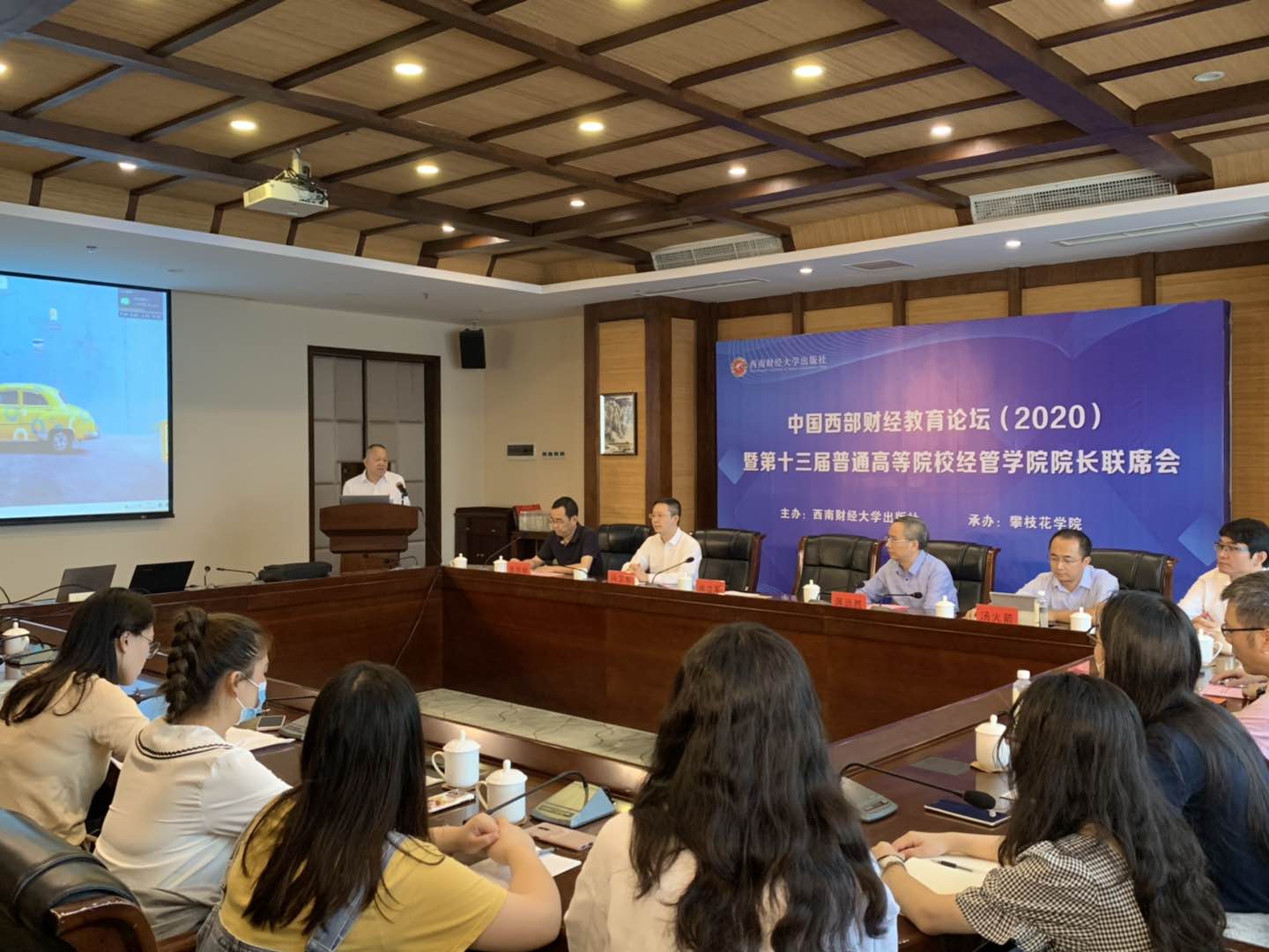 2020820日上午,由西南财经大学出版社主办、攀枝花学院承办的中国西部财经教育论坛(2020)暨第十三届普通高等院校经管学院院长联席会顺利召开。本次论坛采用线上与线下相结合的方式,围绕“加强课程思政、深化产教融合,推进一流经管人才培养”的主题展开,四十余所本科院校近百位经管学院院长、教务处处长以及专业建设负责人线上和线下参会。
