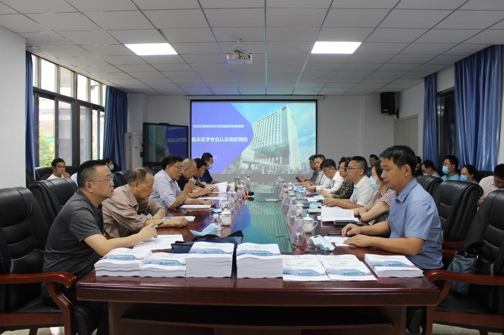 临床专业认证见面会在七号教学楼一楼会议室召开。医院相关负责人从“两大共识,四项措施,三个问题”等做认证准备工作汇报。