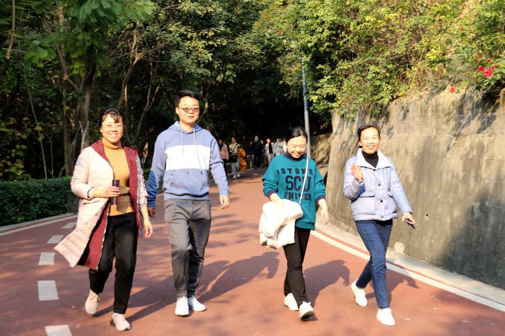 大家呼吸着清新的空气,面不喘气不虚,迈着矫健的步伐,交流着各自工作、生活情况,一路上欢声笑语不断。