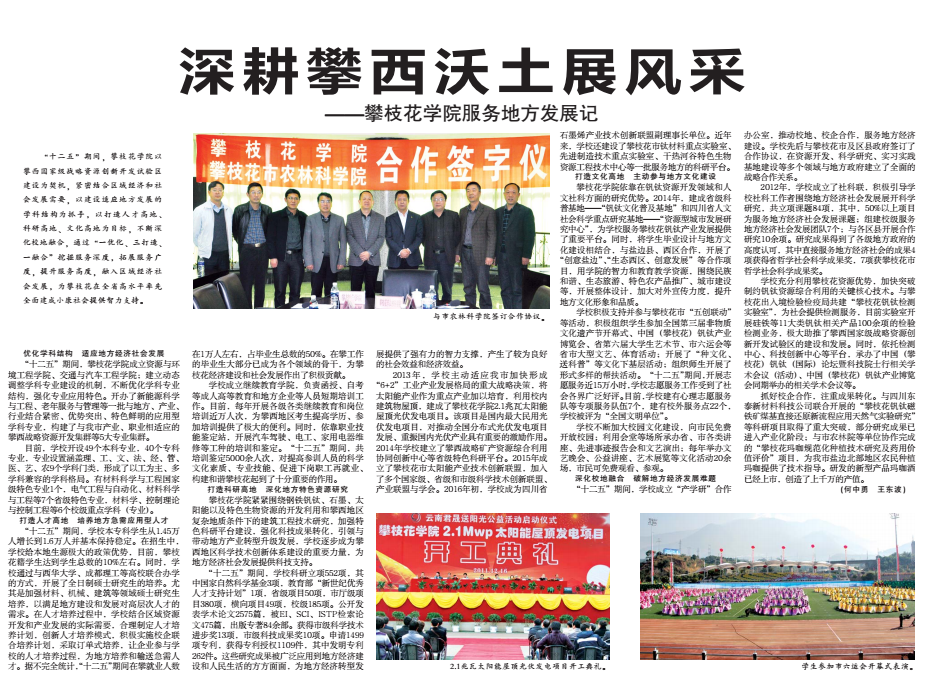 5月11日《攀枝花日报》报道了我校“十二五”期间服务地方工作成绩,现将《攀枝花日报》报道内容全文转载如下。