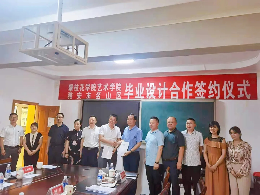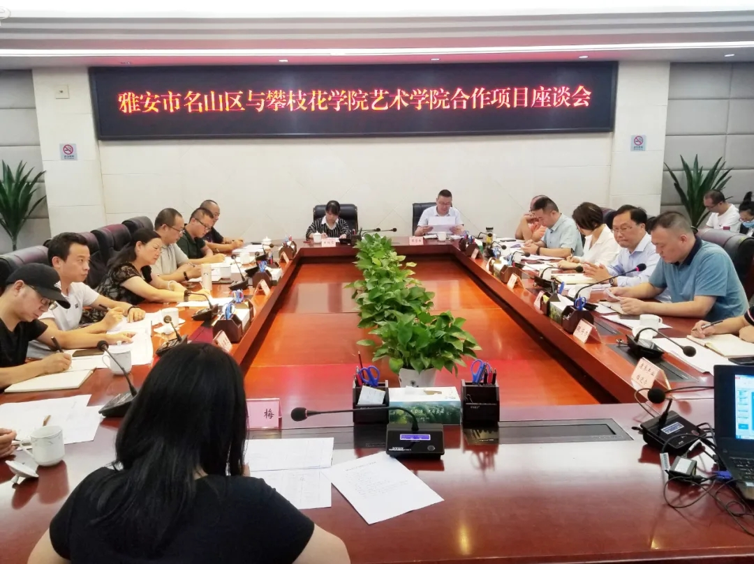 会上,双方交流名山区与我院毕业设计合作项目,艺术学院及历年来校地合作的情况,校地合作成效
