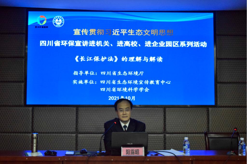 第一讲主题是《长江保护法》的立法及实施,由四川省法学会环境资源法学研究会会长、四川省人大常委会首批立法专家、西南财经大学阳露昭教授主讲,100余名法学院师生聆听了讲座。