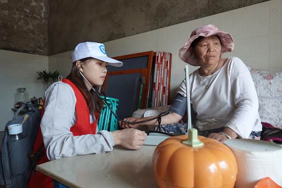 一大早,支部20余名师生党员来到乌喇么村村委会,为集中候在此处的老人开展健康义诊服务,免费为村民提供测血压、抚触、艾灸、拔罐、健康咨询、卫生知识普及等志愿服务。