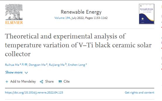 近日,我校土建学院教师马瑞华作为第一作者和通讯作者,以攀枝花学院为第一单位,在国际权威期刊《Renewable Energy》上发表题为“Theoretical andexperimental analysis of temperature variation of V–Ti black ceramic solarcollector”的研究成果。