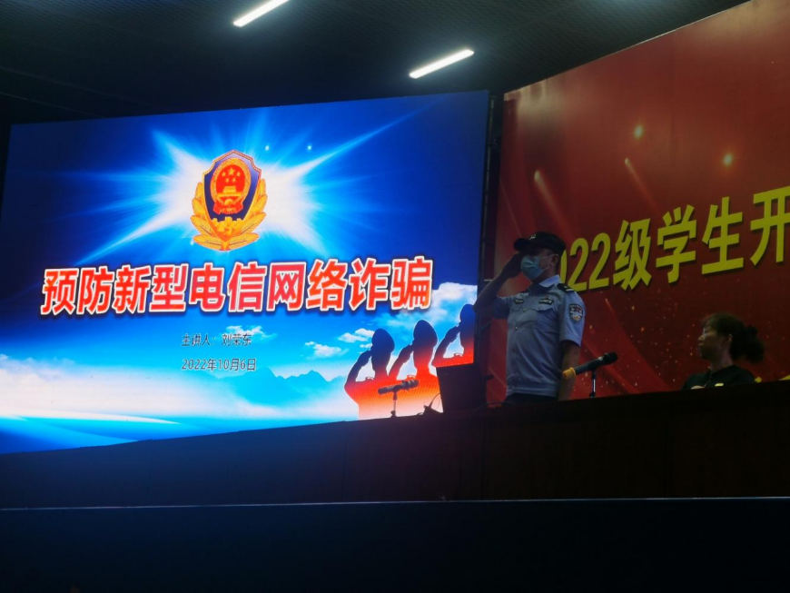 为宣传反诈骗知识,提高学生的防诈骗意识,10月6日晚,学生工作部、保卫处联合东区公安分局、东华派出所和东区反诈中心在南苑运动场为2022级全体新生开展了防范电信网络诈骗教育。
