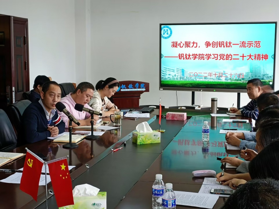 10日26日,钒钛学院于砺志楼303开展了学习党的二十大精神活动。学院领导班子及全体教职员工参加了此次学习及研讨。