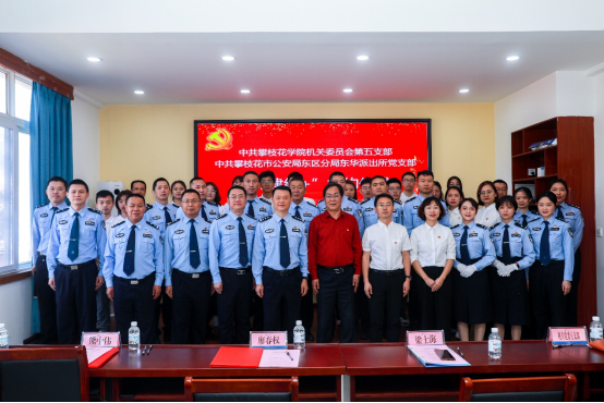 3月22日上午10:00,机关第五党支部、东华派出所党支部在学校励志楼202会议室举行了“党建红+”签约仪式。学校工会常务副主席、机关党委书记梁士海,东区副区长、分局党委书记、局长廖春权,东区分局党委委员、副局长熊中伟,机关第五党支部、东华派出所党支部40余名党员参加了签约仪式。