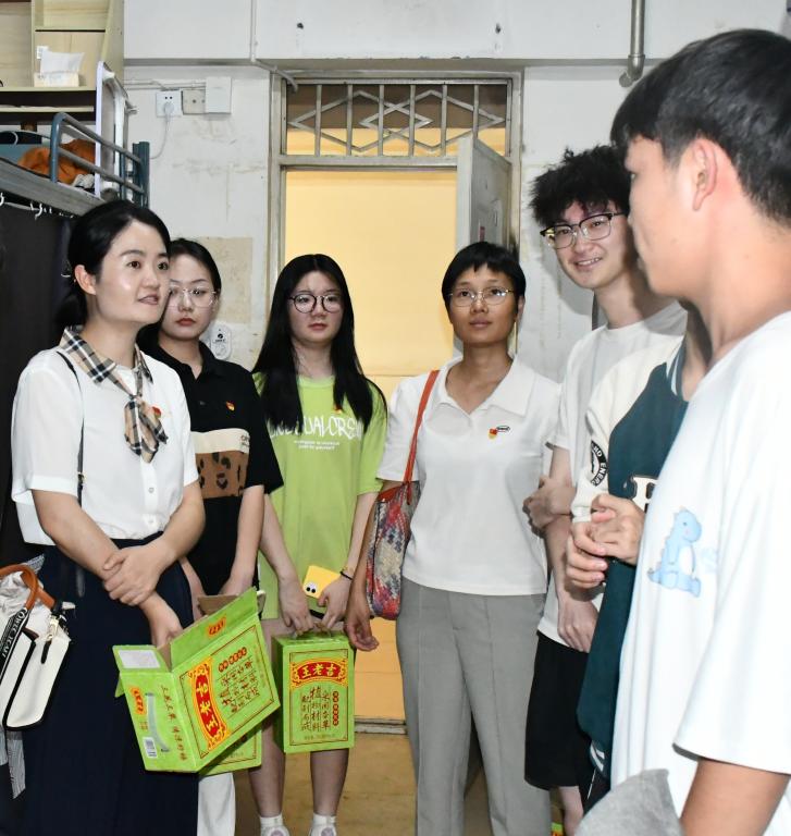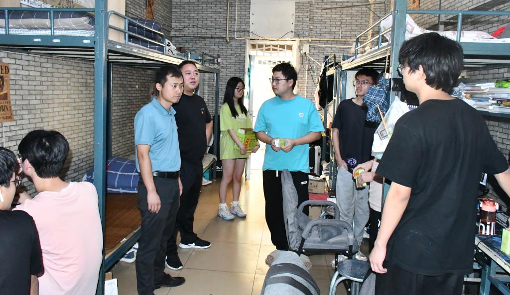 班子成员走访慰问学生,充分肯定了钒钛学子面对酷暑,坚持学习的自律心态;勉励同学们要保持吃苦耐劳的精神,面对短期的高温异常天气,做好防暑工作,保持良好心态,保证学习质量。同时,鼓励大家积极向2023届考研上岸的两个毕业寝室学习,以寝室作为加强学风建设的最小单位,共同树立远大目标,寝室成员相互监督、共同成长,争创文明优标寝室。