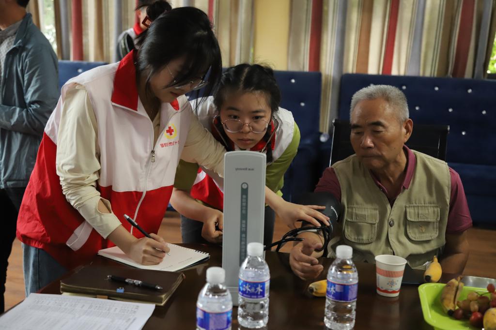 “献爱心、暖人心”。座谈会后,基础医学院的学生志愿者们为老同志送上贴心医疗保健服务,详细讲解心肺复苏知识,现场模拟急救情景,给每一位老同志测量血压,询问身体状况并提出健康管理建议