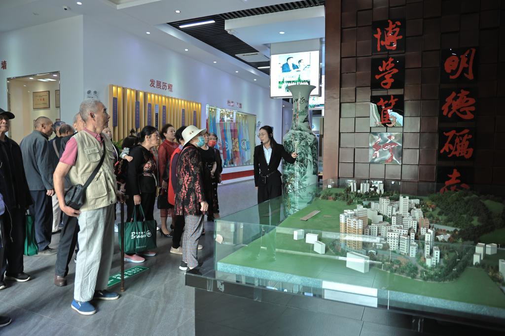 “游校园、开心颜”。老同志们集体乘坐校园观光车游览了校园,参观了校史馆。在讲解员的带领下,老同志们共同追忆曾经的岁月,感叹学校的发展。