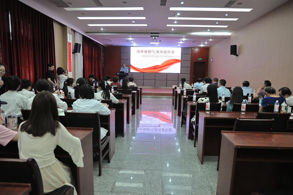 6月18日,我校第六届大学生讲思政课展示活动在办公楼416室举行。党委常委、副校长张旭辉出席活动并讲话。教务处、学工部、马克思主义学院相关负责人参加活动。