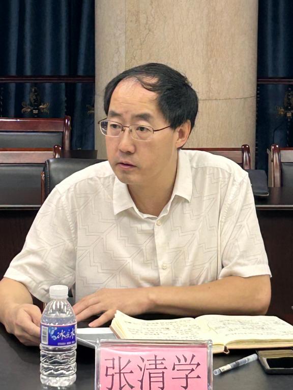 张清学书记详细介绍马克思主义学院学习贯彻落实《党史学习教育工作条例》、推进党史进高校的工作情况,总结马克思主义学院党史研究与教育教学有机结合的工作经验。