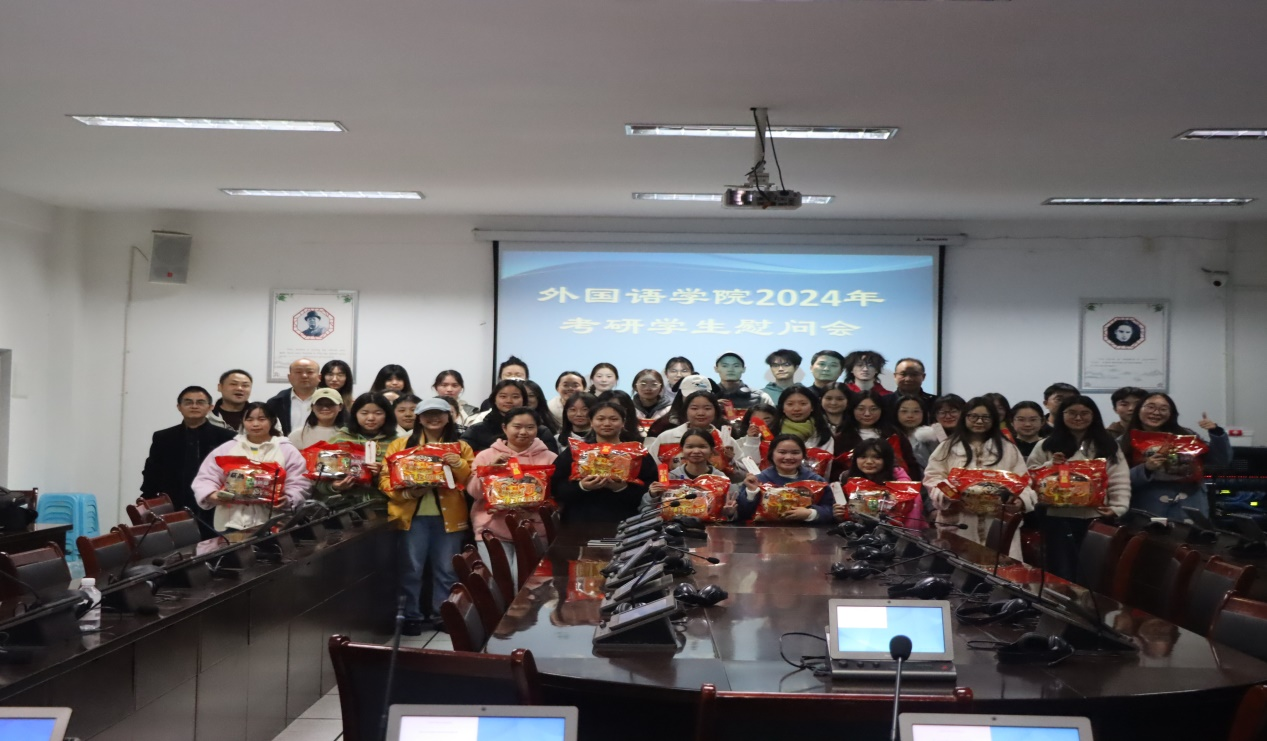 随着全国硕士研究生统一招生考试的临近,外国语学院于12月19日晚在明德楼同传室举办了考研学生慰问会。此次会议旨在为2025届考研学子加油鼓劲,帮助考生缓解备考期间的压力和焦虑,增强他们的信心和动力,以更好状态迎接考试。会议由外国语学院党委书记付乔主持,高朝阳副院长(主持工作)出席会议,毕业年级各班主任及2025届73名考研学子参此次会议。