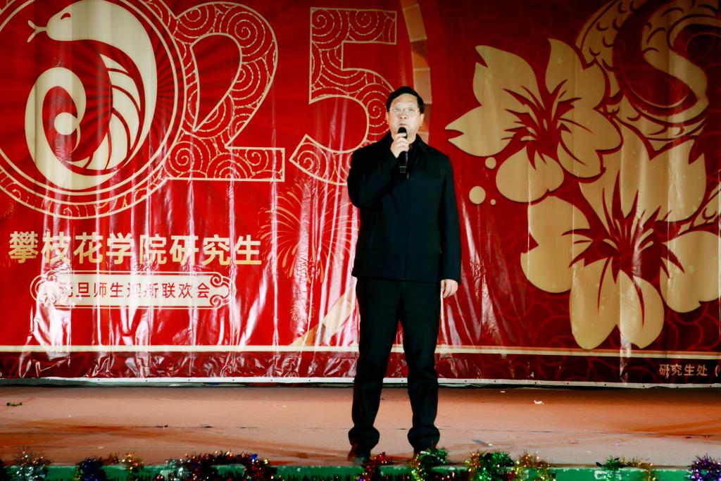 副校长石维富发表新年贺词,回顾过去一年学校在硕士点建设、研究生教育等方面取得的成绩,对师生的努力予以充分肯定,并展望新一年的发展愿景,激励大家在学术、科研与生活中不断奋进,赢得台下阵阵掌声。