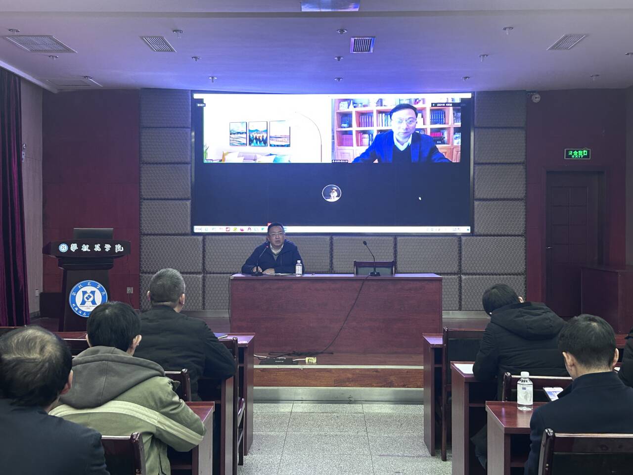 提升我校教育教学成果质量,做好教学成果奖的申报工作1月15日下午,西北大学原党委常委、副校长赖绍聪教授应邀在我校弘毅楼416室开展了一场关于“高等教育教学成果奖培育、凝练与申报”的专题讲座,此次讲座采取线下集中线上讲座的形式。各二级学院院长、分管教学工作副院长、教学成果奖申报负责人及骨干成员等70余人聆听了讲座。讲座由教务处处长杨勇攀主持。