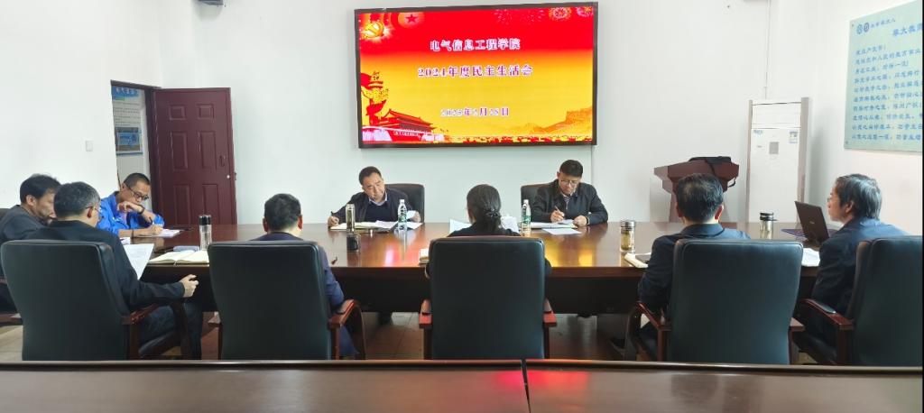 2月28日下午,电气学院在分析测试中心7楼会议室召开了2024年度领导班子民主生活会。会议以“深入学习贯彻习近平新时代中国特色社会主义思想,巩固深化党纪学习教育成果,综合发挥党的纪律教育约束、保障激励作用,为进一步全面深化改革、奋力谱写中国式现代化四川新篇章,推动建设阳光健康美丽的应用型一流大学提供坚强纪律保证”为主题,紧密结合学院工作实际,深入查摆问题,严肃开展批评与自我批评,明确整改方向和措施。学校党委常委、宣传部部长苏兴仁及宣传部副部长方青松到会指导。电气学院领导班子参加会议,党委委员、纪委委员、各党支部书记以及各科室负责同志列席会议,会议由电气学院党委书记周敏主持。