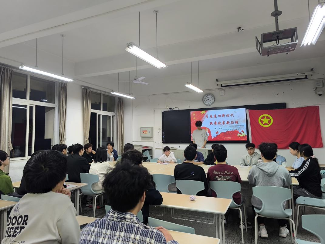 团支书卓皓对过去一段时间内23级电子2班团支部工作进行了全面总结汇报。他从团支部建设、活动开展、取得成效等多个方面汇报了支部的成长与工作经验教训。